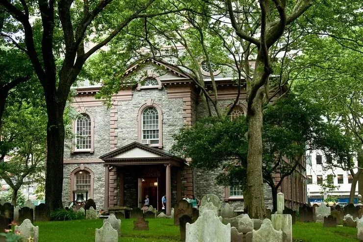 Greengage completed a full landscape renovation at St. Paul’s Chapel, restoring and upgrading the grounds with new imported brownstone walkways, bluestone pathways, benches, irrigation improvements, erosion checks, soil amendments, and new plantings. The work included overnight tree installations and careful execution using Greengage’s proven methods.